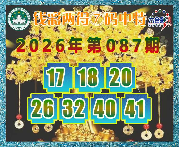 087期:【钱彩两得】 🍟⑦码中特🍟【17.18.20.26.32.40.41】开:26
