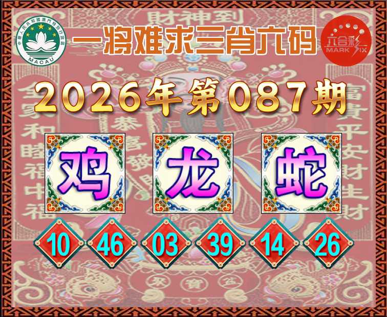 087期:『一将难求』 🎖️三肖六码🎖️【鸡龙】开:蛇26