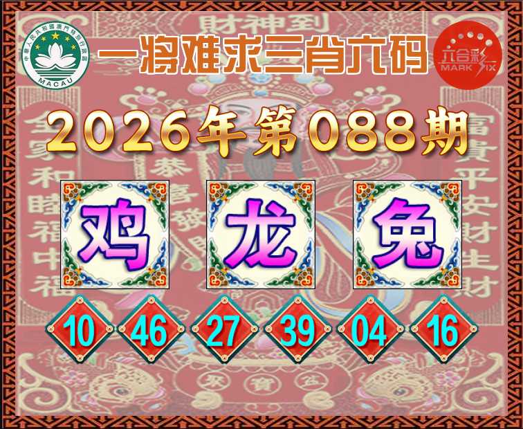 088期:『一将难求』 🎖️三肖六码🎖️【鸡兔】开:龙27